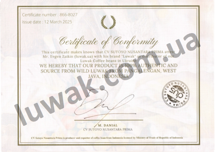 Наша плантация расположена в самом сердце пышной среды обитания Циветы на ост.Ява (Индонезия), где обитает около 1400 диких особей (также известные как Civet Cats). Они могут сами выбирать, какие кофейные плоды хотят потреблять и придерживаться своего разнообразного натурального рациона, который обогащает вкус нашего восхитительного кофе Копи Лювак.